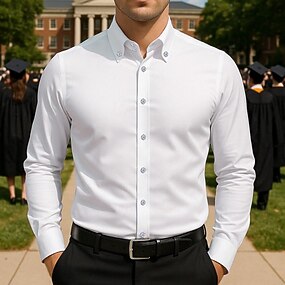 Homme Chemise Plein Mariage Plein Air Noir Blanche Rose dragée manche longue Col rabattu Eté Printemps Vêtement Tenue Garniture de laitue