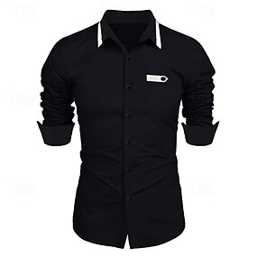 Homme Chemise Chemise à col Chemise boutonnée Bloc de couleur Mariage Soirée Noir Blanche Rose dragée Bleu manche longue Revers Printemps & Automne Vêtement Tenue Patchwork