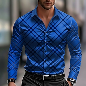 Homme Géométrique Grille / Carreaux Chemise Chemise en satin Chemise habillée manche longue Vintage Rétro Vacances Tenue Quotidienne Été Printemps Automne Col Rabattu Impression 3D Chemises boutonnées