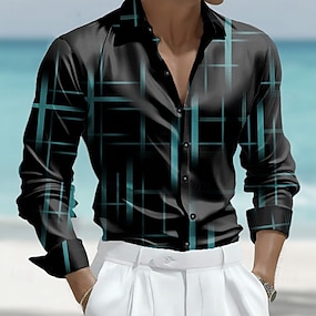 Homme Grille / Carreaux Formes Géométriques Chemise Chemise en satin Chemise habillée manche longue Mode Décontractée Vacances Tenue Quotidienne Été Printemps Automne Col Rabattu Impression 3D