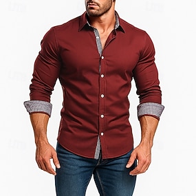 Homme Chemise Chemise habillée Chemise Décontractée Chemise Boutonnée Uni Formel Mariage Bleu Blanche Rouge manche longue Revers Été Printemps Vêtement Tenue Patchwork