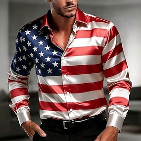 Homme 4 juillet, 250e anniversaire des États-Unis Drapeau Américain Crânes Chemise Chemise en satin Chemise d'été manche longue Patriotique Extérieur Festival Été Printemps Col Rabattu Impression 3D