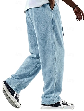 Homme Pantalons Pantalon décontracté 100% Coton Pantalons Amples Pantalon délavé à l'acide Cordon de serrage Taille Élastique Jambe Droite Uni Doux Confortable Longueur complète Occasionnel Quotidien