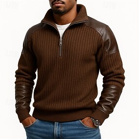 Homme Sweat-shirt Pull Sweat-shirt quart de fermeture éclair Tricot côtelé Marron Col montant Uni Patchwork Sport & Loisir Occasionnel Quotidien Streetwear Frais Vêtements de sport Printemps