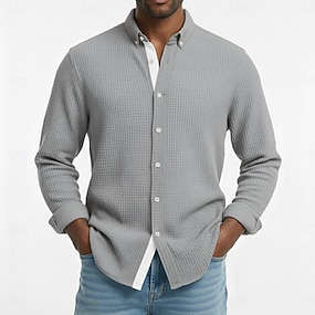 Homme Chemise Chemise gaufrée Chemise Décontractée Chemise Boutonnée Noir Blanche Bleu Kaki manche longue Uni Col Rabattu Extérieur Soirée Vêtement Tenue Mode Streetwear Moderne Occasionnel