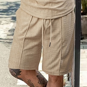 Homme Shorts Shorts d'été Shorts de plage Short décontracté Short texturé Jacquard Cordon de serrage Taille Élastique Couleur Unie Confort Respirant Longueur Genou Quotidien Extérieur Vêtements de rue
