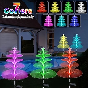 Lot de 2/4 lampes solaires à LED à 5 niveaux, lampes de jardin à fibre optique en forme de méduse, éclairage d'extérieur étanche pour jardin, allée, Noël, mariage, camping, décoration de fête