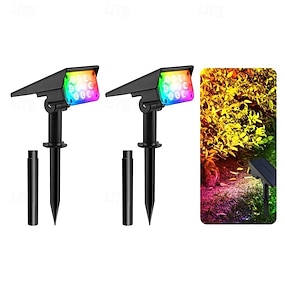 Projecteurs solaires d'extérieur à couleurs changeantes, lampes solaires étanches, projecteurs paysagers multicolores RGB pour jardin, cour, allée, pelouse, terrasse, chemin, décorations de Noël
