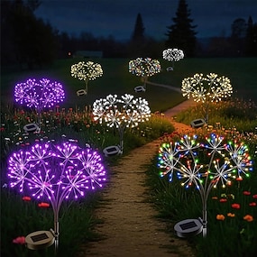 Guirlande lumineuse solaire en forme de pissenlit, effet feu d'artifice - 2 modes d'éclairage pour jardin, pelouse, camping, décoration de fête (1 pièce)