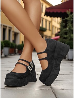 Chaussures compensées Mary Jane bordeaux pour femmes avec boucle en cristal - Talons ronds en daim rétro chic pour tenues urbaines, tenues quotidiennes et looks de vacances