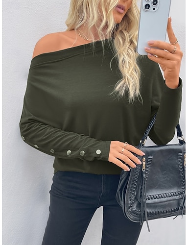 Femmes Top à épaules dénudées T-shirt Boucle en métal Élégant Sexy manche longue Épaules Dénudées Hauts Réguliers Quotidien Sortir Tenues pour un rendez-vous galant Vert Véronèse Été Printemps Automne