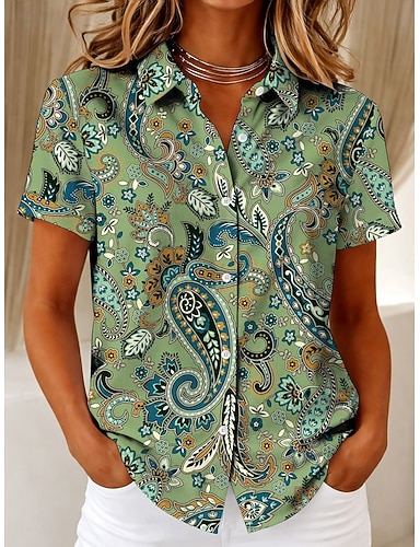 Femmes Chemise Boutons Imprimé Graphique Paisley ancien Élégant Moderne Manche Courte Col de chemise Hauts Réguliers Occasionnel Quotidien Vert Claire Marron clair Violet Marron Vert Été Printemps