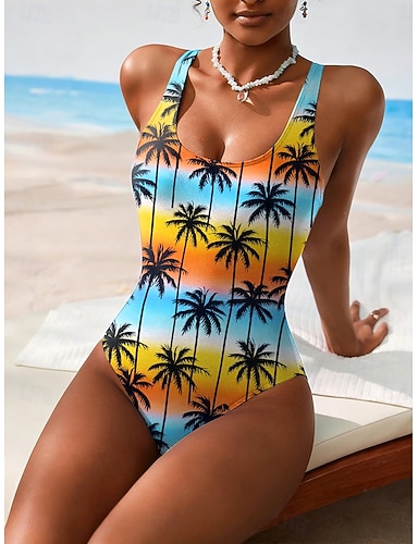 Femmes Maillots de Bain Une Pièce Slips Maillot de bain Tenues de plage Été Graphique Tropical Col en U Sans manches Maillots de bain
