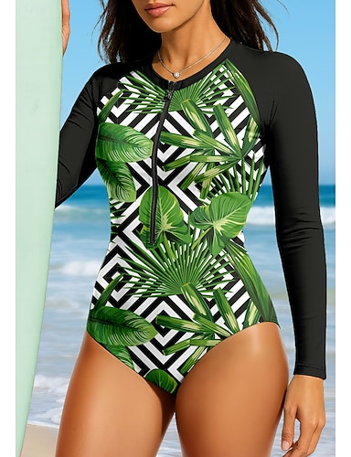 Femmes Maillot Anti UV Maillot de bain 1 pièce Tropical Protection Solaire UV UPF50+ Séchage Rapide manche longue Maillot de Bain maillot de bain Surf Plage Sports Nautiques Été