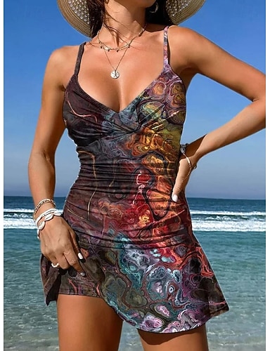 Femmes Maillots de Bain Une Pièce Jupe Maillot de bain Élégant Vacances Graphique Géométrique Col en V Sans manches Maillots de bain