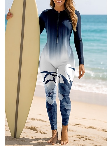 Femmes Standard Maillot Anti UV Maillots de bain intégraux Combinaison Fine Fleuri Dégradé fermeture éclair sur le devant UPF50+ Protection UV Séchage Rapide manche longue Maillot de Bain Surf