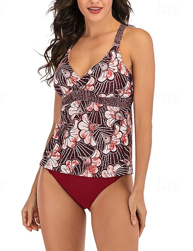 Femmes Tankini Maillot De Bain Deux Pièces Dos Nu Maillot de Bain Floral Maillots de Bain Vin Respirant Séchage Rapide Sans manches - Natation Surf Plongée en apnée Été