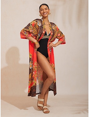 robe de plage maxi droite en satin soyeux Scarlet Tigres