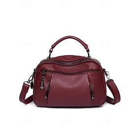 sac à bandoulière en similicuir pour femme, petit sac à main décontracté avec plusieurs compartiments zippés, sac à bandoulière quotidien élégant pour les voyages et le shopping couleur vin noir blanc