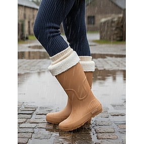 Bottes de pluie rouges imperméables pour femmes avec revers amovible en fausse fourrure – des chaussures résistantes et élégantes pour les intempéries, les aventures en plein air et les activités de jardinage.