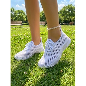 Femmes Occasionnel Quotidien Intérieur À Bretelles Talon plat Bout Rond Sportif Occasionnel Confort Maille Mocassin jaune fluo Noir Blanche