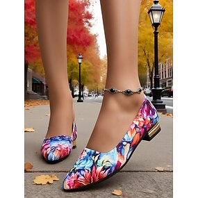 Chaussures plates à talons bas pour femmes à imprimé floral coloré avec accent métallique - chaussures confortables de style vintage artistique pour le streetwear d'automne et les promenades en ville