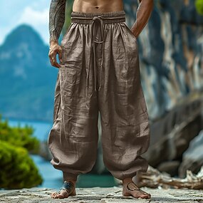 Homme Pantalon d'été Culottes bouffantes Pantalons de Plage Sarouel ample Cordon de serrage Avec Poches Bouffant Uni Confort Respirant Longueur complète Occasionnel Quotidien Extérieur Vacances