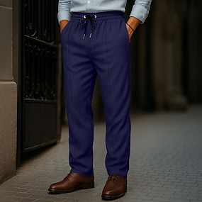 Pour des hommes Coton Lin Dress Pants works Pantalon décontracté Affaires Vêtements de maison Élégant Mode Occasionnel Noir Blanche Marine foncé Printemps & Été Pantalon Couleur Unie Coupe régulière
