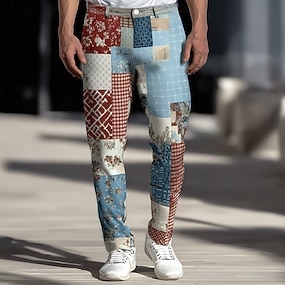 Homme Géométrique Bloc de Couleur Patchwork Dress Pants works Pantalons Pantalons de Costume Taille Moyenne Ethnique Vintage Rétro Extérieur Fête Pantalon slim avec poches Printemps Automne