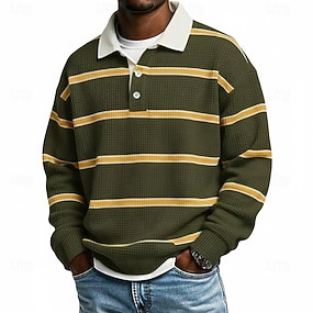 Homme Rayure Chemises Polo Gaufre Polo de rugby manche longue Polos Chemises à Col Occasionnel Athleisure Tenue quotidienne Impression 3D Boutons Printemps Automne Hiver Bleu Marron Vert