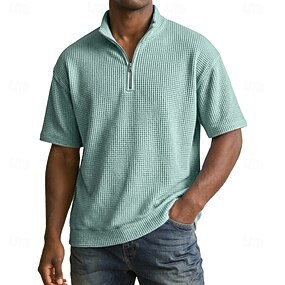 Homme Polo à fermeture éclair Texturé Occasionnel Quotidien Zip quart Manche Courte Mode Loisir Uni Fermeture éclair Quart de zip Été Printemps Bleu Vert translucide Bleu marine Abricot Bleu lagune
