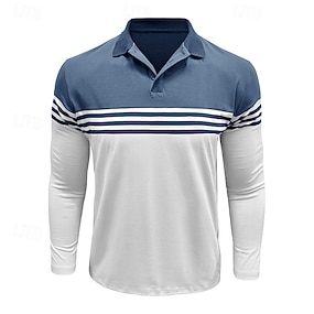 Homme Bandes verticales Polo manche longue Col Rabattu Affaires Décontracté Quotidien Sport & Loisir Athleisure Décontracté Quotidien Boutons Printemps Automne Hiver bleu marine