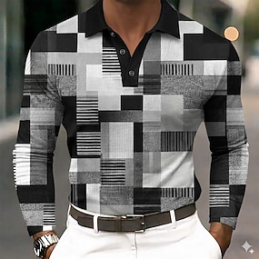 Homme Plaid Chemises Polo Gaufre Chemise de golf manche longue Polos Chemises à Col ancien Occasionnel Vêtements de vacances Tenue formelle Vêtements de festival Boutons Impression 3D Printemps