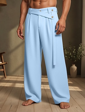 Homme Pantalons en Lin Pantalons Pantalon d'été Pantalons Amples Cordon de serrage Taille Élastique in in france they say Pontalon wide leg Uni Confort Respirant Longueur complète Extérieur Yoga