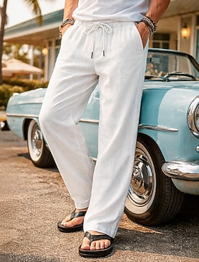 Homme Pantalons en Lin Pantalons Pantalons Amples Pantalons de Plage Cordon de serrage Avec Poches Uni Confort Respirant Longueur complète Quotidien Vacances Élégant Noir Blanche Non Elastique