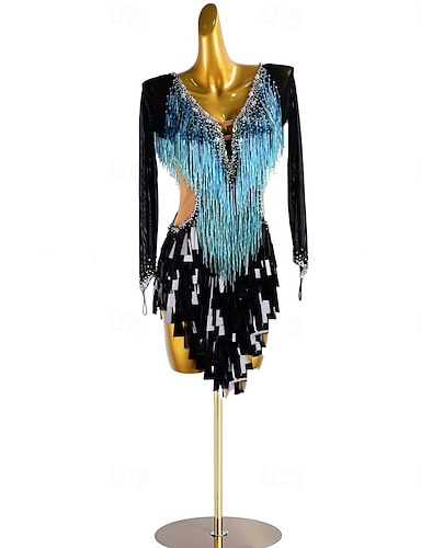 Danse Latine Robe Strass Gland Femmes Soirée Entraînement Performance manche longue Spandex Nylon