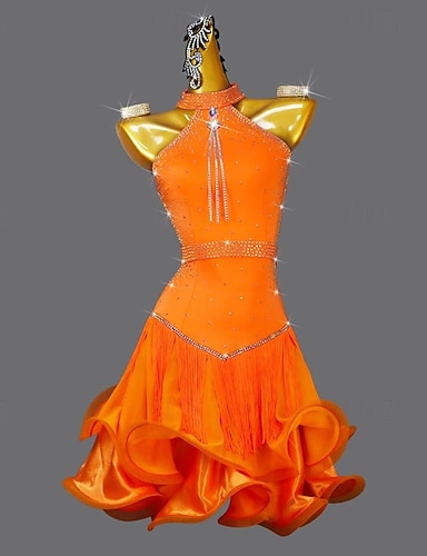 Danse latine Robe Cristal / strass Gland Fantaisie Femme Utilisation Entraînement Sans Manches Spandex