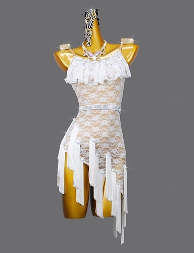Danse salsa latine Robe Strass Volants Gland Femmes Performance Entraînement Sans manches Spandex Dentelle