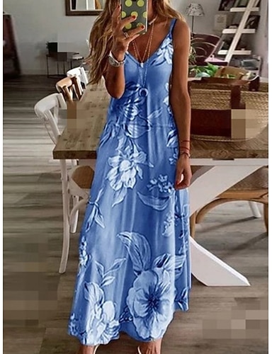 Femmes Robe Longue Maxi Robe Robe Fleurie Robe Nuisette Robe bohème Mini-robe Mode Basique Moderne Quotidien Vacances Sortir Coupe régulière Fleuri Sans manches Col en V Bleu de minuit Été Printemps
