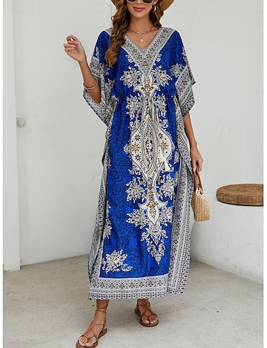 Femmes Robe maxi Robe de Plage Robe Décontractée Robe bohème Vêtement couvrant Élégant Mode Moderne Extérieur Vacances Sortir Coupe Ample Abstrait Demi Manches Col en V Bleu Rose Claire Bleu Roi