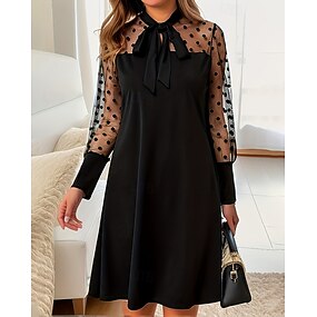 Femmes Mini Robe Robe noire Robe de Cocktail Robe en Chiffon Robe de Cérémonie Élégant Formel Travail Soirée robe demoiselle d honneur Coupe régulière manche longue Col ras du cou Noir Automne