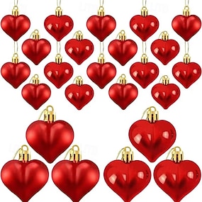Ornements en forme de cœur pour la Saint-Valentin 24 pièces finition brillante et mate rouge et or décorations en forme de cœur suspendues pour anniversaires fête des mères décoration de sapin de Noël