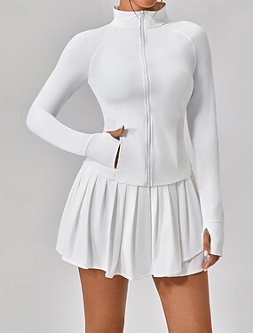 Femmes Couleur Unie Ensemble de tennis Jupe décontractée Jupes de tennis avec shorts Veste de sport de tennis manche longue Fermeture éclair Avec Poches Séchage Rapide Respirant Tennis Pickleball
