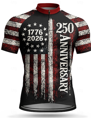 250e anniversaire de l'Amérique Jour de l'Indépendance Fête nationale américaine Hommes Maillot de cyclisme Drapeau Américain Drapeau / Drapeau national Manche Courte Cyclisme Maillot Top avec 3