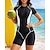 Femmes Maillot Anti UV Maillot de bain Maillots de bain Patchwork Zip Up Protection UV Élastique Manche Courte Maillot de Bain Maillot de bain Surf Scaphandre autonome Natation Été