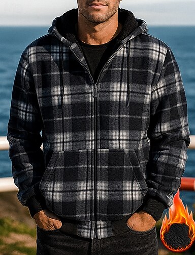 Homme Noël À carreaux Veste en flanelle jacquard Veste chemise à capuche Automne / Hiver avec poches manche longue Athleisure Coupe-vent Chaud Randonnée Course Voyage Vacances Rouge / noir Rouge noir