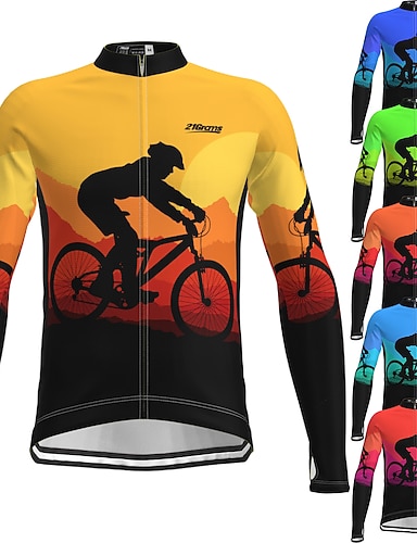 Homme Maillot de cyclisme Graphique Dégradé manche longue Cyclisme Top avec 3 poches arrière VTT Vélo tout terrain Cyclisme sur route Séchage Rapide Bandes réfléchissantes Poche Arrière Évacuation de