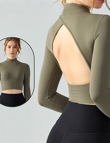 Maillots de sport haut de Pilates Haut de sport Femmes Top manche longue Doux pour la Peau Douceur Élastique Coupe ajustée Dos découpé Pilates Danse Yoga Automne Des sports Tenues de Sport Ivoire Rose
