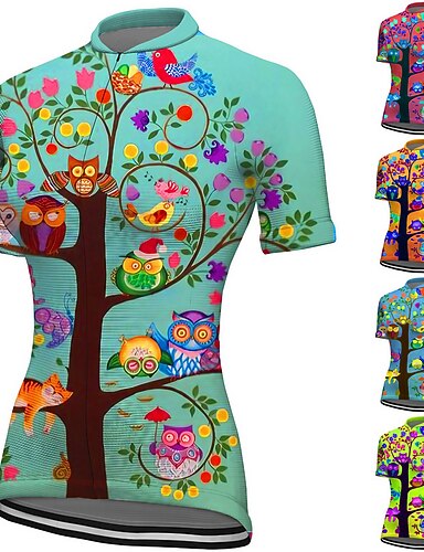 Femmes Maillot de cyclisme Arbre Manche Courte Cyclisme Maillot Top avec 3 poches arrière VTT Vélo tout terrain Cyclisme sur route Séchage Rapide Bandes réfléchissantes Poche Arrière Évacuation de