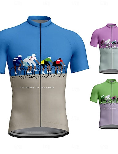 Homme Maillot de cyclisme Graphique Géométrique Lettres & Chiffres Manche Courte Cyclisme T-shirt Maillot Top avec 3 poches arrière Résistant aux UV Séchage Rapide Fermeture Éclair Frontale Bandes